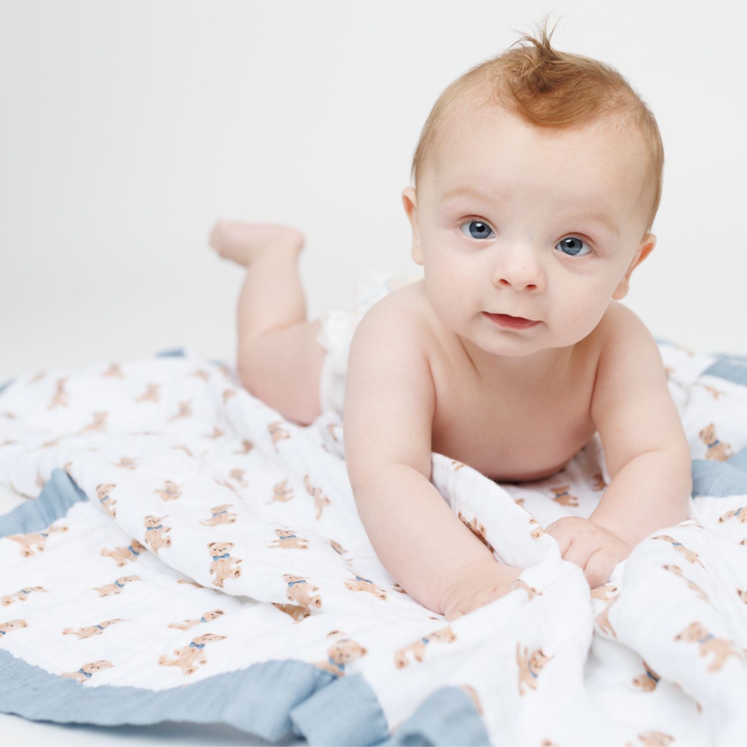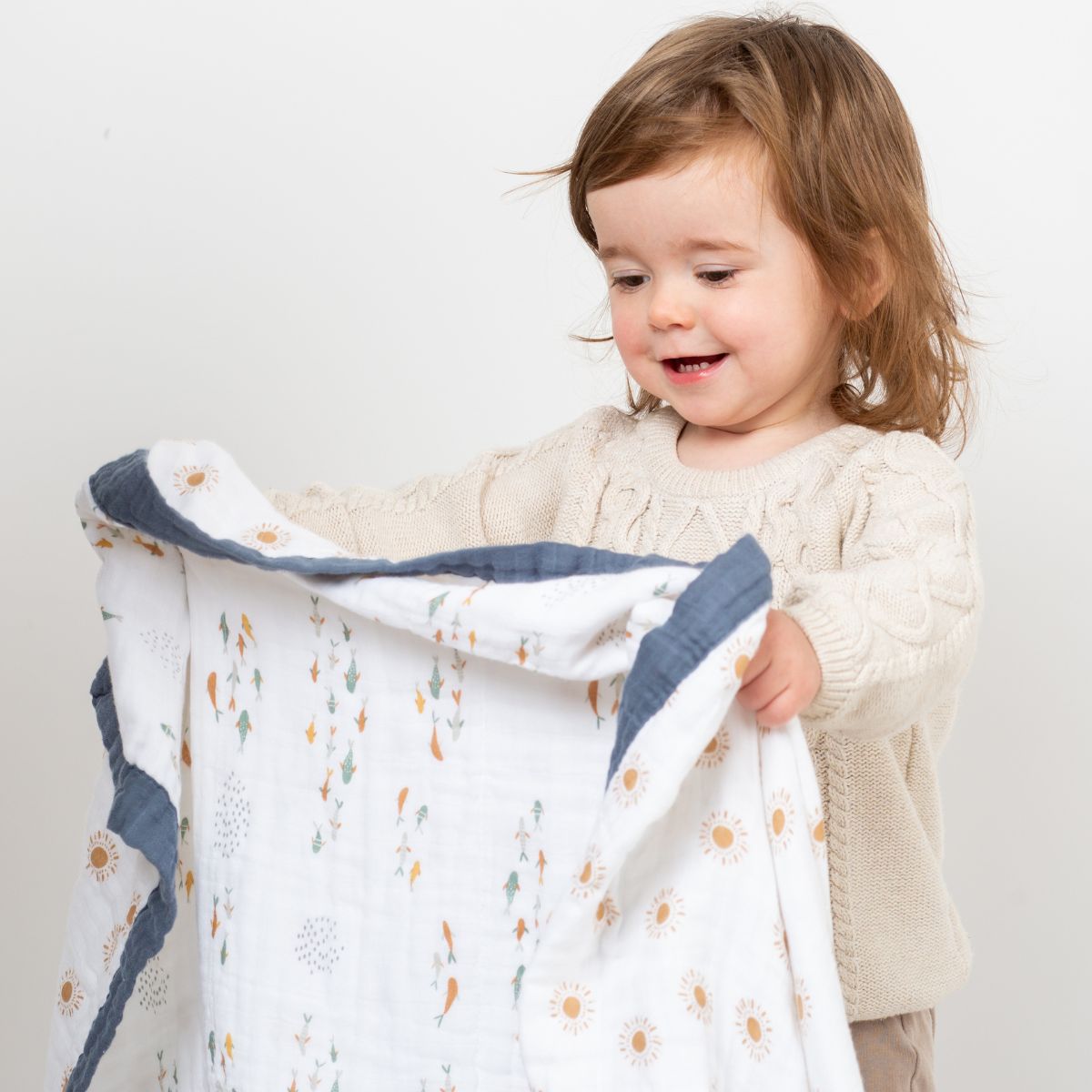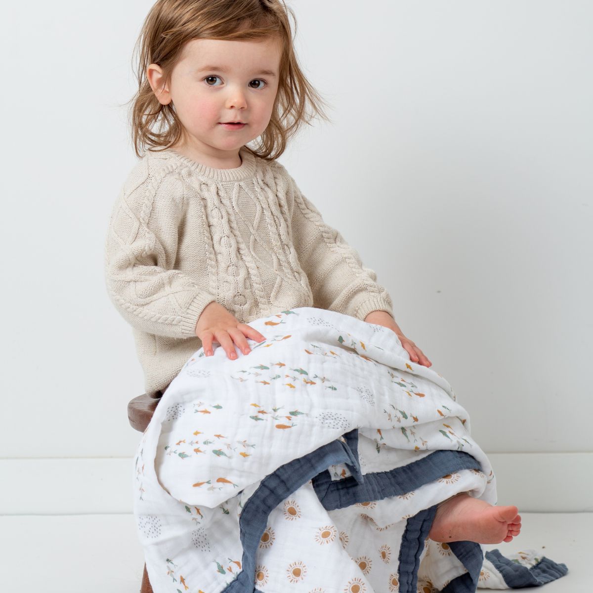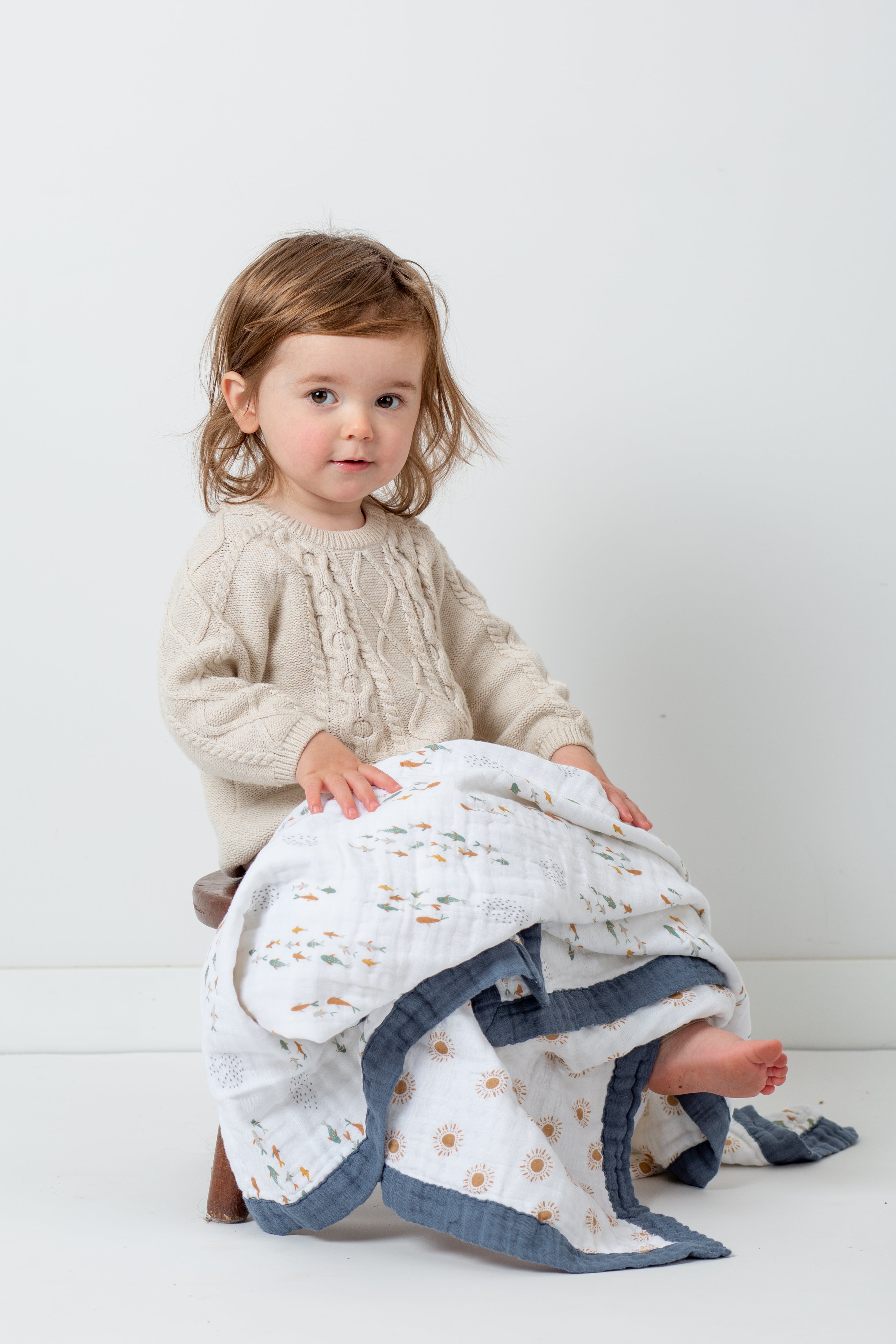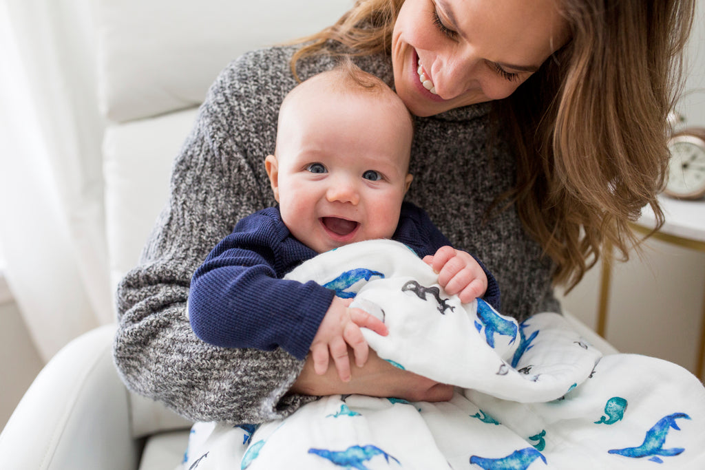 We have two generous sizes in our baby and toddler quilts.Our deluxe muslin bamboo quilts are crafted with four layers of muslin and jersey trim, measuring a generous 47 inches by 47 inches. Our classic cotton quilts feature three layers of soft cotton muslin with color-coordinating trim and reversible prints, sized at 40 inches by 40 inches.