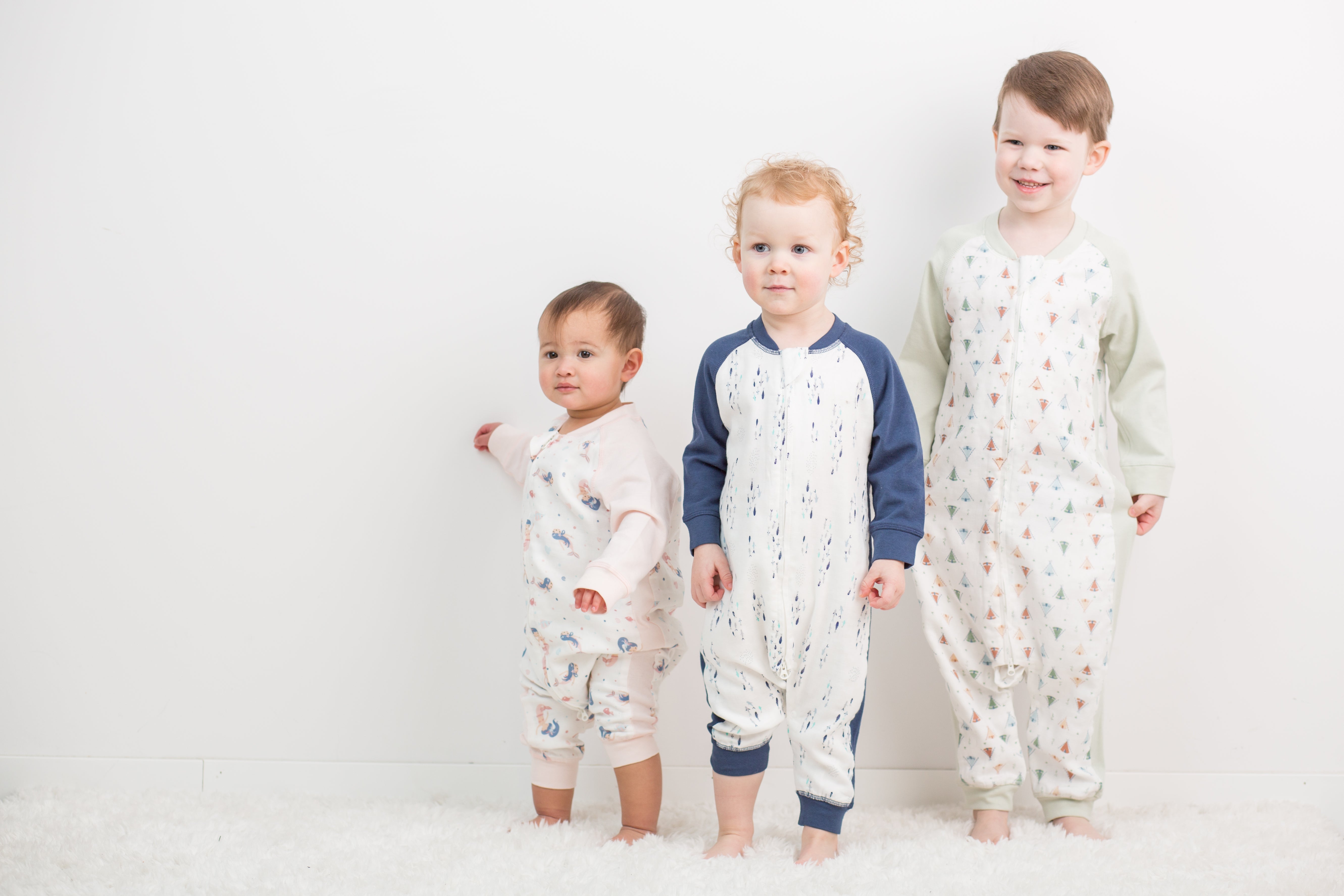 Sizes range from baby to toddler so they can transition from sleep sacks to sleeping suits and keep your baby's arms and legs warm and cozy.