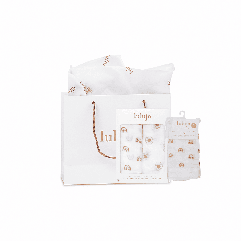 Includes the Rainbows & Suns 2-pack swaddle blankets & Rainbows Security Blankets.