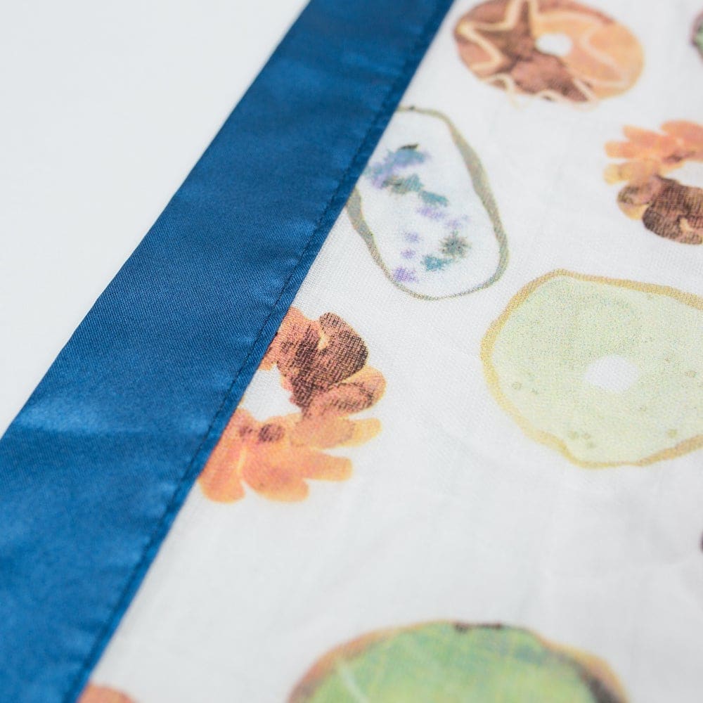 100% cotton muslin with smooth satin edging